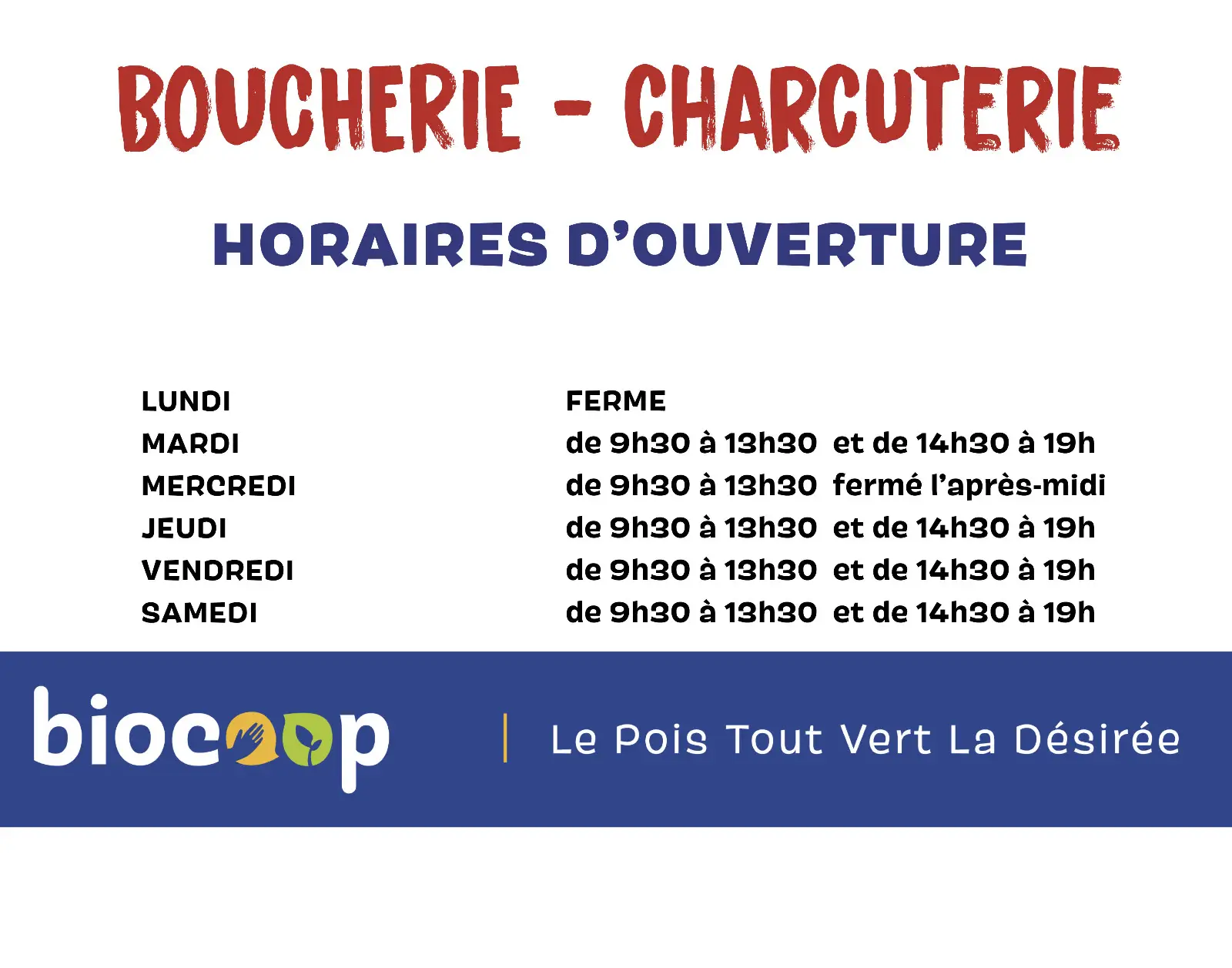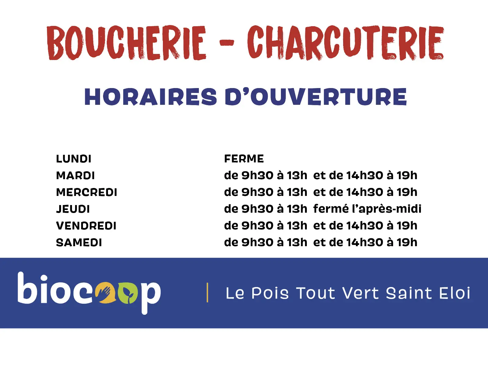 Attention nos boucheries sont toutes fermées le lundi.